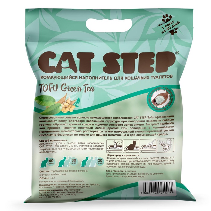 Наполнитель для кошачьих туалетов Tofu Green Tea, растительный комкующийся, 12 л, Cat Step 7 фото