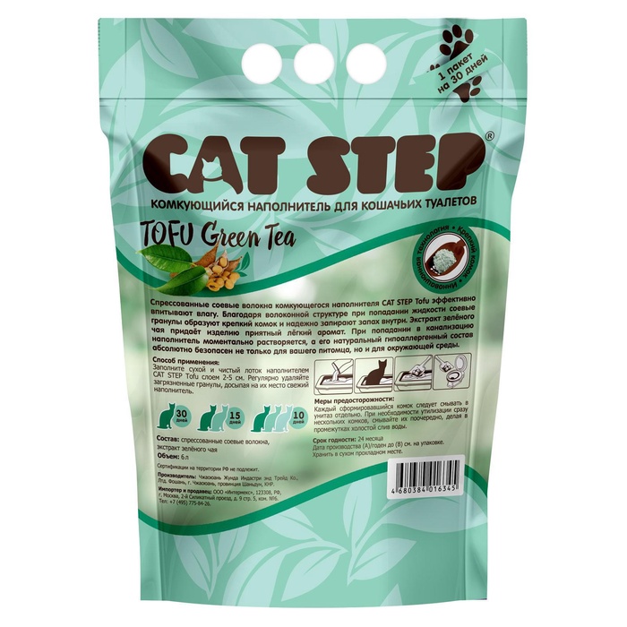 Наполнитель для кошачьих туалетов Tofu Green Tea, растительный комкующийся, 6 л, Cat Step 7 фото