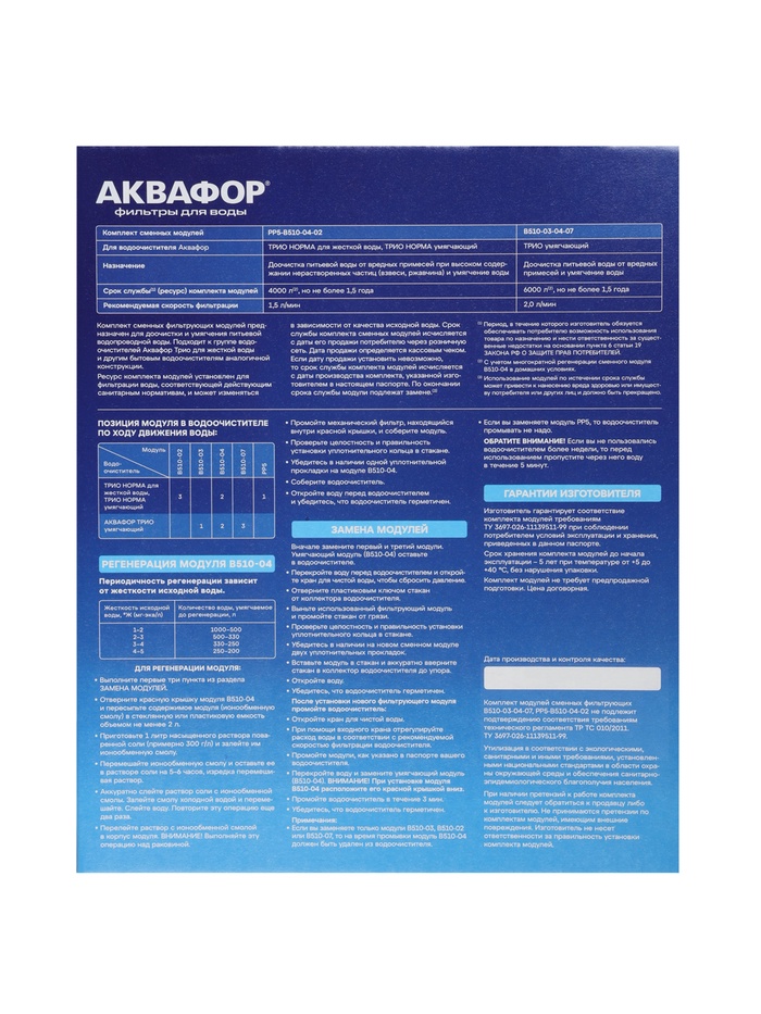 Комплект сменных картриджей для «Аквафор» Трио Норма, РР5-В510-04-02, умягчающий