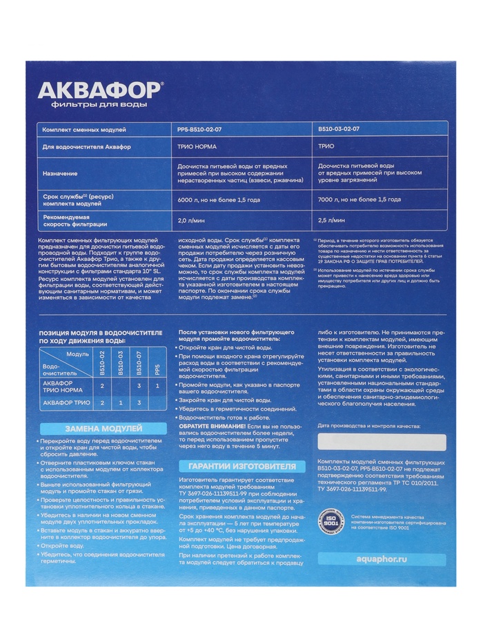 Комплект сменных картриджей для «Аквафор» Трио Норма, РР5-В510-02-07, фильтрующий