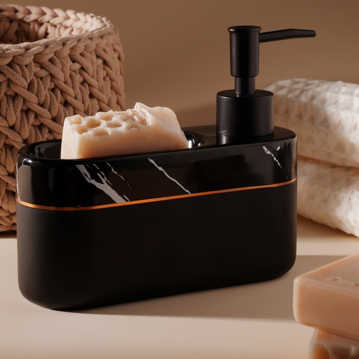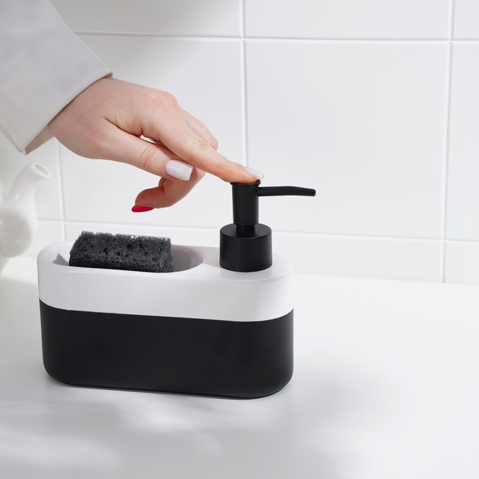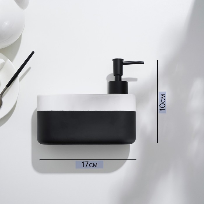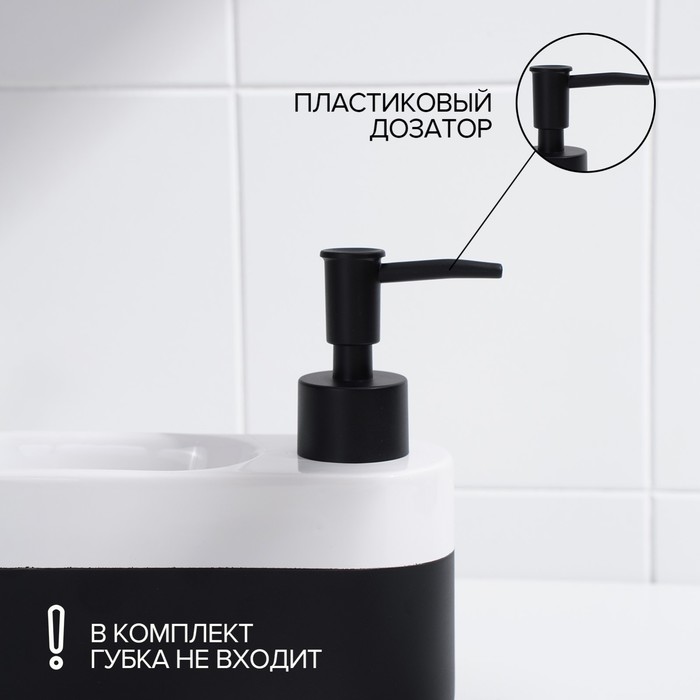 Дозатор для мыла SL Home Lines, с подставкой для губки, 400 мл, чёрный 6 фото