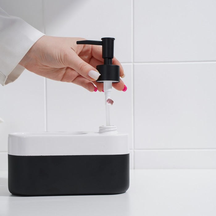 Дозатор для мыла SL Home Drop, с подставкой для губки, 450 мл, чёрный 6 фото