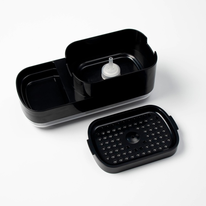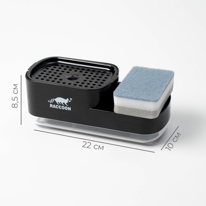 Дозатор для моющего средства с подставкой для губки Raccoon, 550 мл, губка в комплекте, цвет чёрный 7 фото