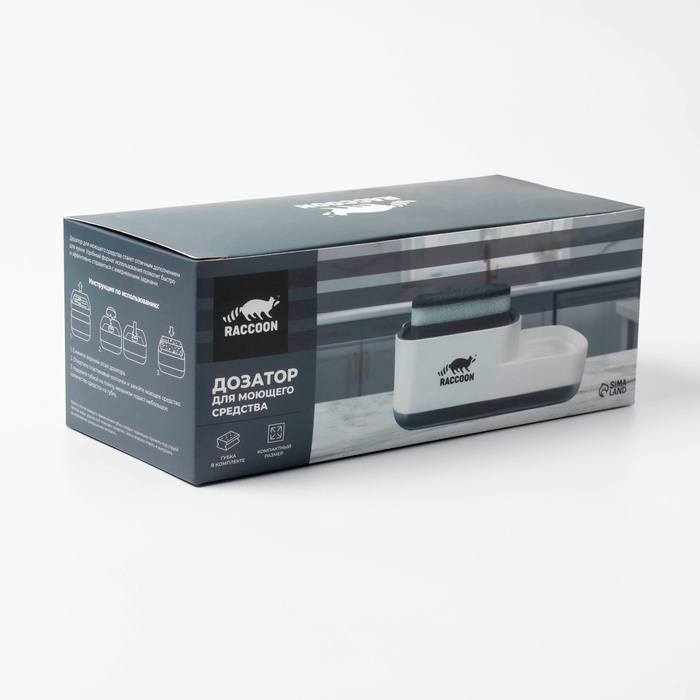 Дозатор для моющего средства с подставкой для губки Raccoon, 550 мл, губка в комплекте, белый 7 фото