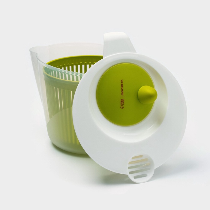 Центрифуга для сушки зелени Доляна Fresh cook, 2 л, пластик, белая, зелёная 9 фото