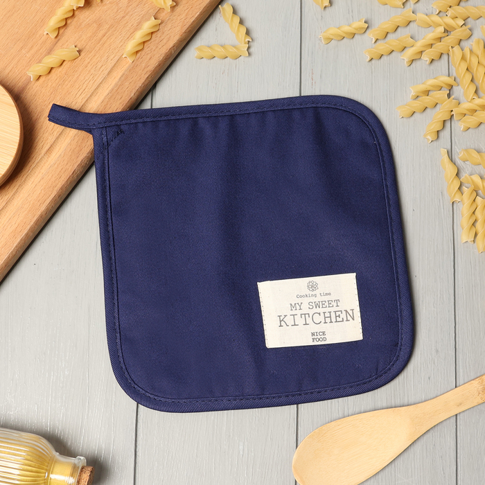 Прихватка «Этель» Kitchen, синяя, 19×19 см, саржа,100% хлопок 5 фото