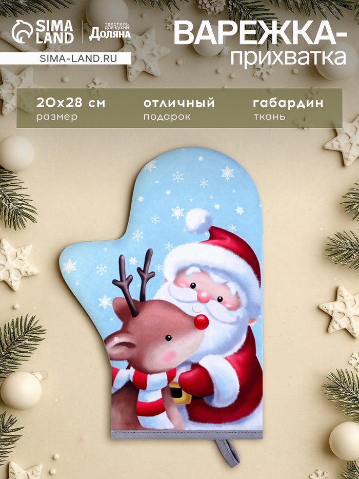 Варежка-прихватка «Доляна. Новогоднее волшебство», 20×28 см, 35% хлопок, 65% п/э, ватин 250 г/м² 5 фото
