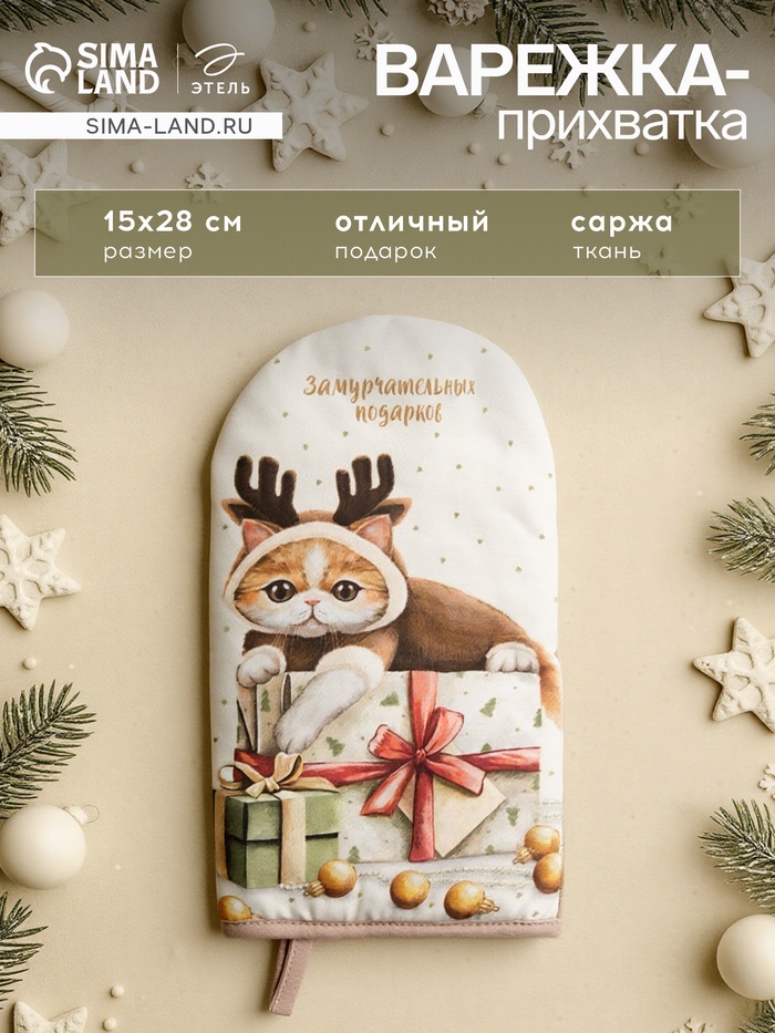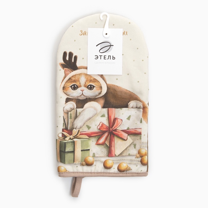 Варежка-прихватка новогодняя «Доляна» Christmas kittens, 20×28 см, 35% хлопок, 65% п/э, ватин 250 г/м² 4 фото