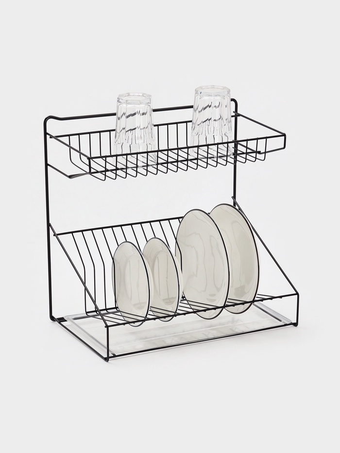 Сушилка для тарелок с поддоном, 38×17.5×23.5 см, чёрная 7 фото