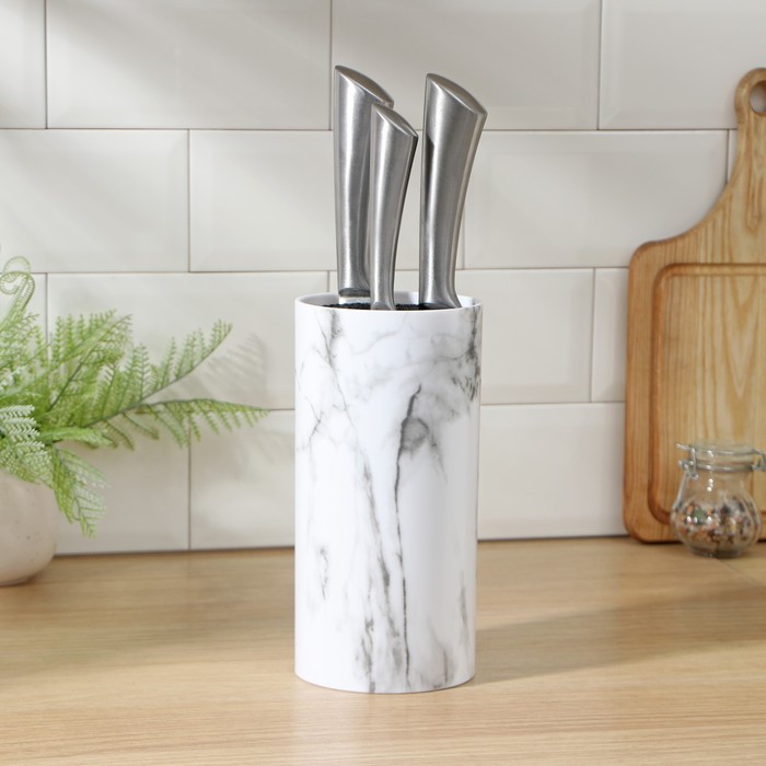 Подставка для ножей с наполнителем Доляна «Мрамор», 22×11 см, цвет белый 4 фото