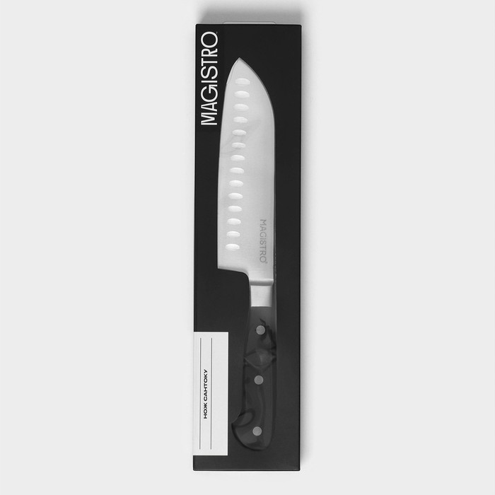 Нож Сантоку кухонный Magistro Dark wood, длина лезвия 17.8 см 5 фото