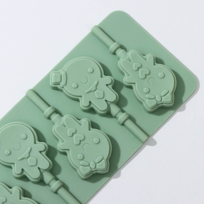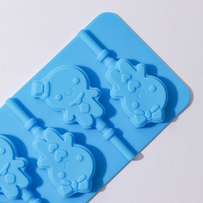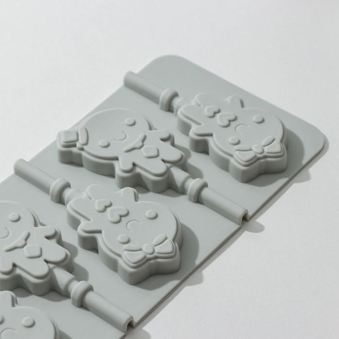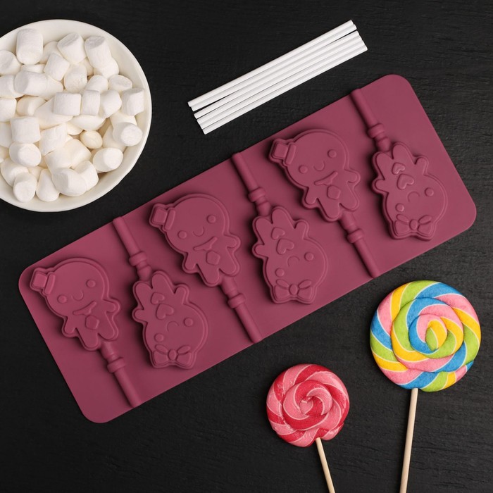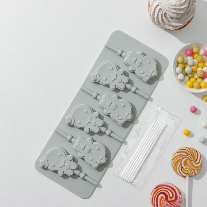 Форма для леденцов Доляна «Девочка, мальчик», силикон, 24×9.5 см, 6 ячеек, с палочками, цвет МИКС