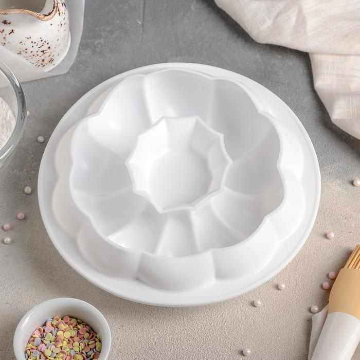 Форма для муссовых десертов и выпечки Доляна «Цветок», силикон, 21×7 см, цвет белый