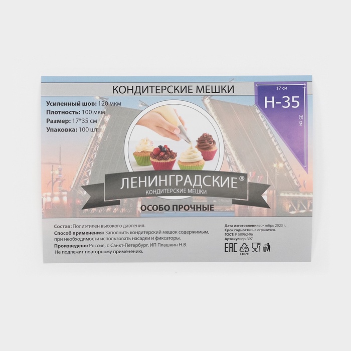 Кондитерские мешки KONFINETTA, 70 мкм, 30×20 см (размер S), 10 шт.