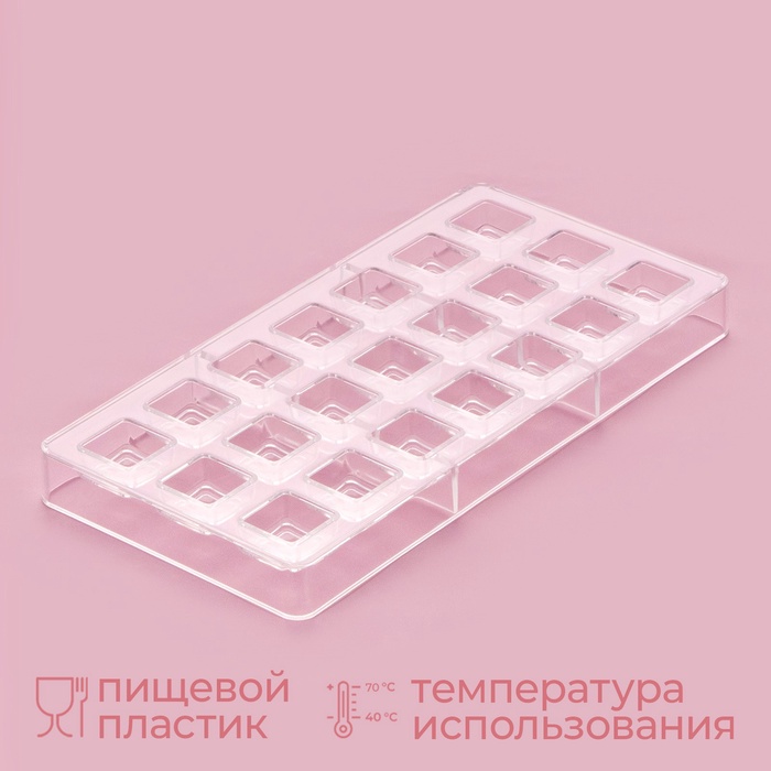 Форма для конфет и шоколада KONFINETTA «Тоффи. Квадрат», 27.5×13.5×2.5 см, 21 ячейка 2.5×1.5 см, прозрачная 6 фото