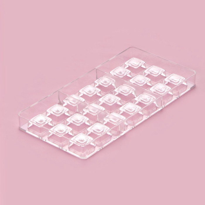 Форма для конфет и шоколада KONFINETTA «Шаффл», 27.5×17.5×2.5 см, 21 ячейка 3×3×1 см, прозрачная 6 фото