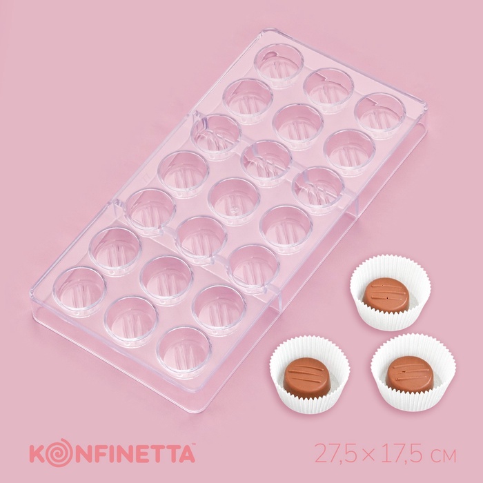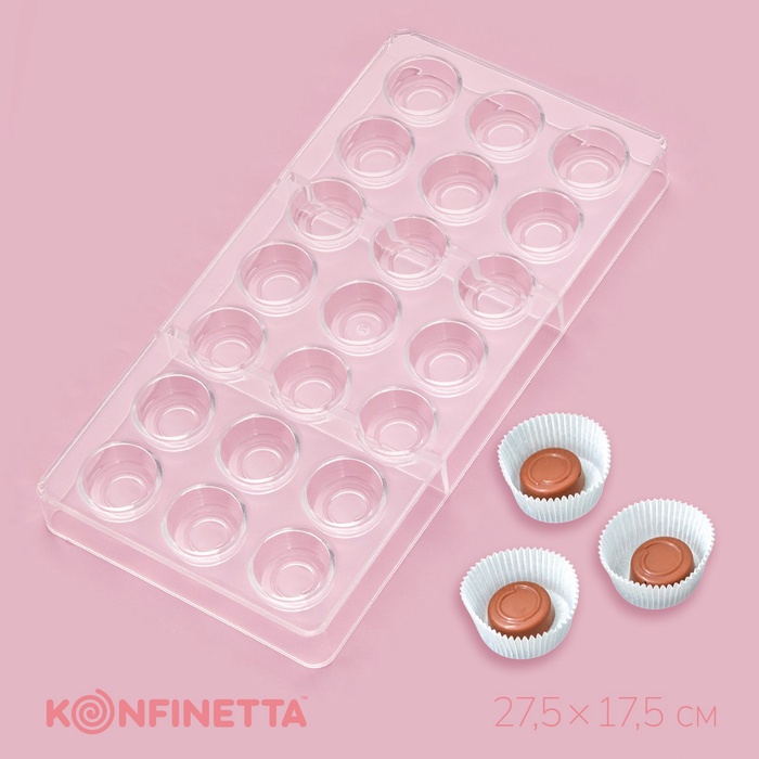 Форма для конфет и шоколада KONFINETTA «Буэно», 27.5×13.5×2.5 см, 21 ячейка 3.5×1.5×1 см, прозрачная 6 фото