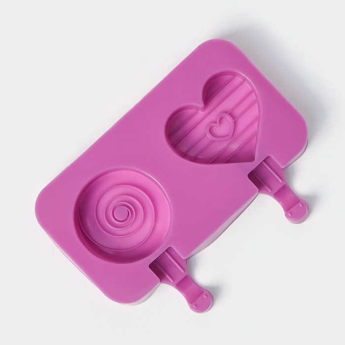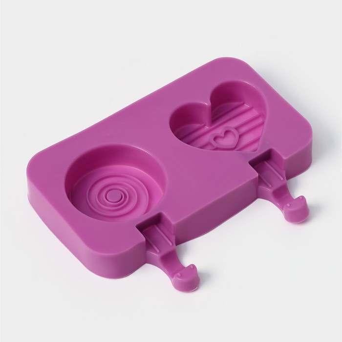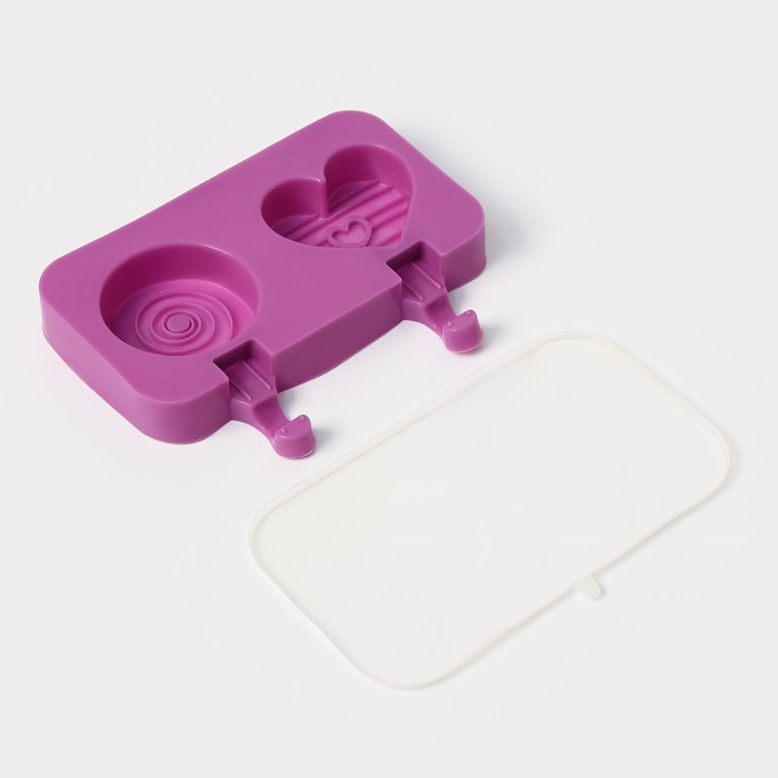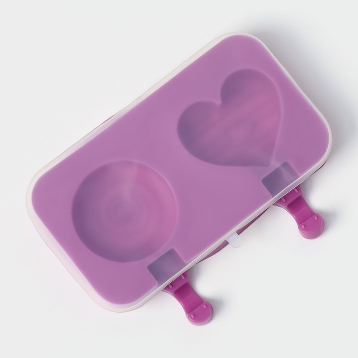 Форма для мороженого «Любовь», силикон, 19.5×11×2.5 см, 2 ячейки, с крышкой и палочками (50 шт.), сиреневая 10 фото