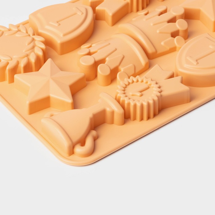 Форма для шоколада Доляна «Чемпион», силикон, 12 ячеек, 24×16×2 см, персиковая 5 фото