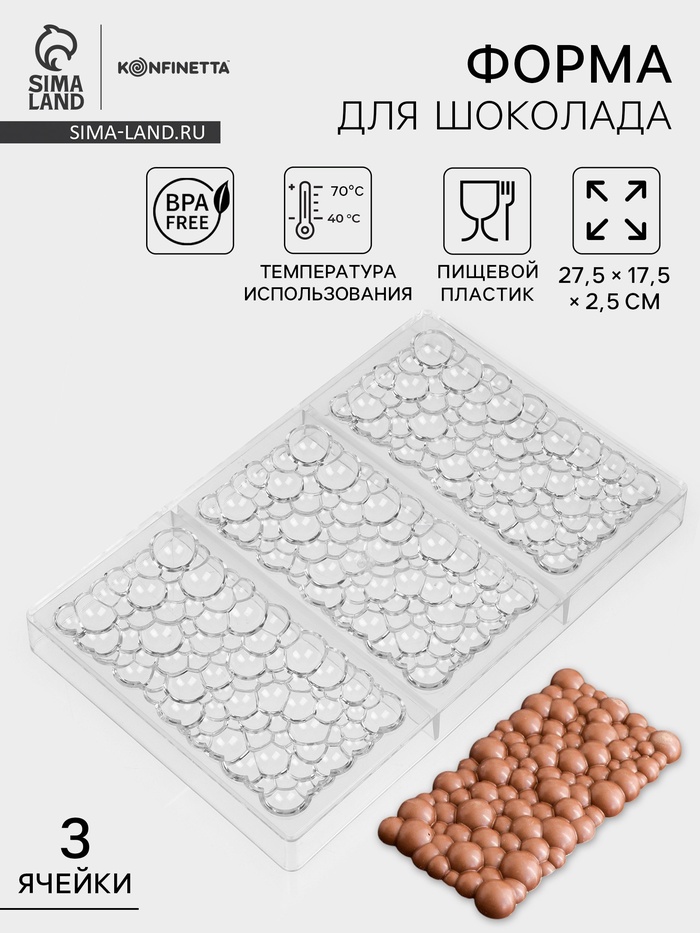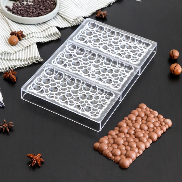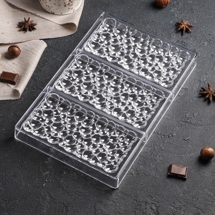 Форма для шоколада KONFINETTA «Симпл-димпл», 27.5×17.5×2.5 см, 3 ячейки 15.3×7.5×0.8 см, прозрачная 6 фото