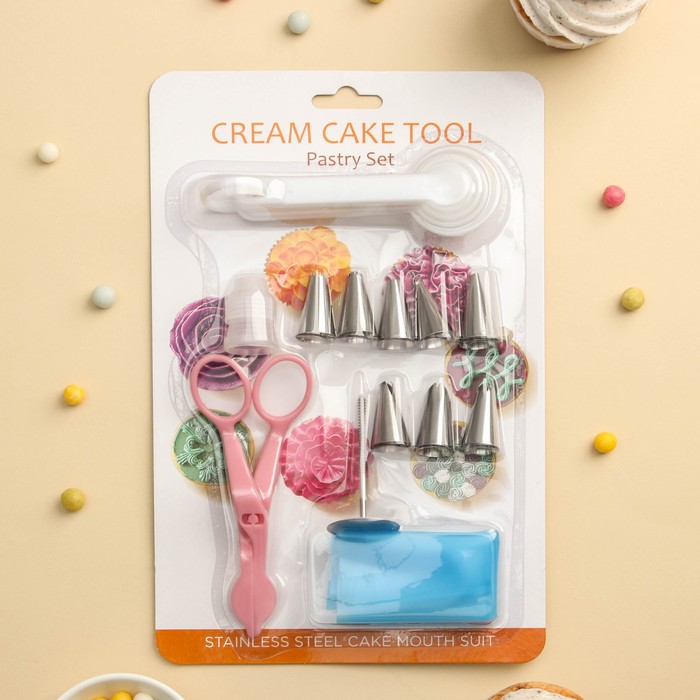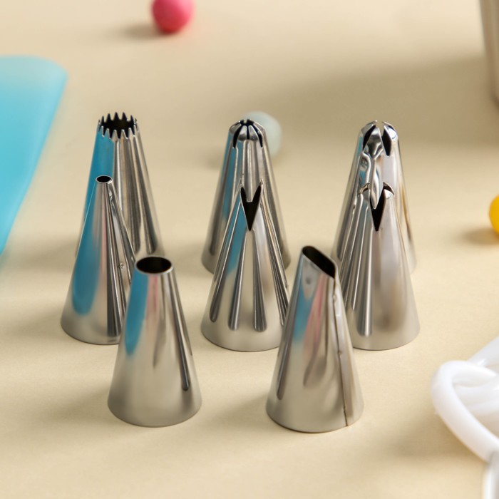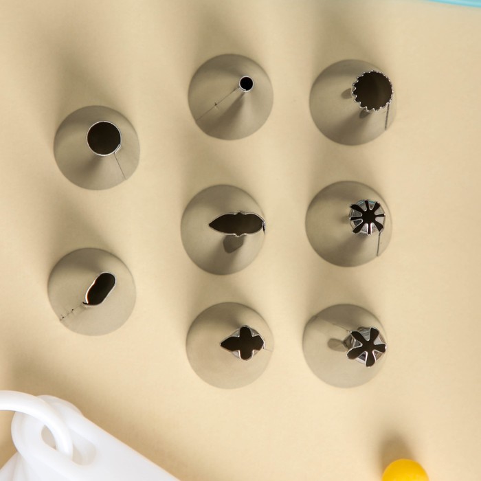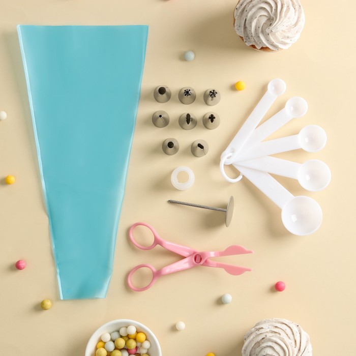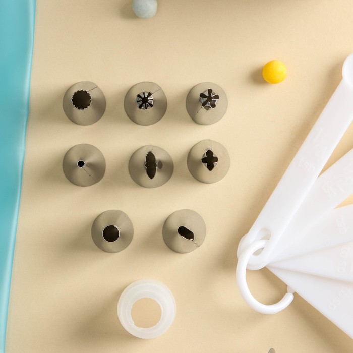 Набор кондитерский «Норма», 13 предметов: щипцы, 8 насадок, кондитерский мешок, адаптер, мерные ложки, кондитерский гвоздь 9 фото