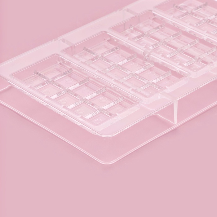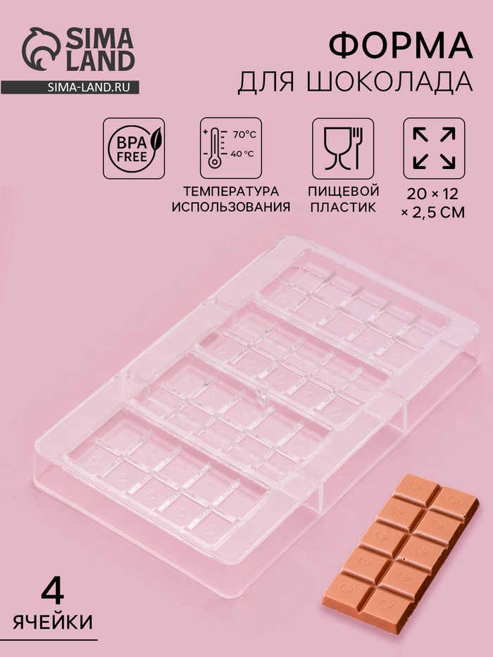 Форма для шоколада «Плитки с сердцами», 20×12×2.5 см, 4 ячейки 8.5×4.2×0.7 см, прозрачная 5 фото