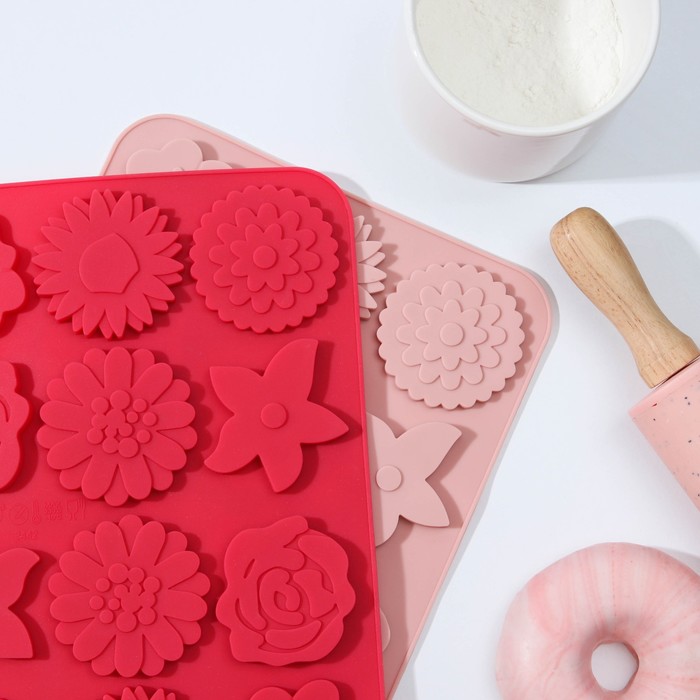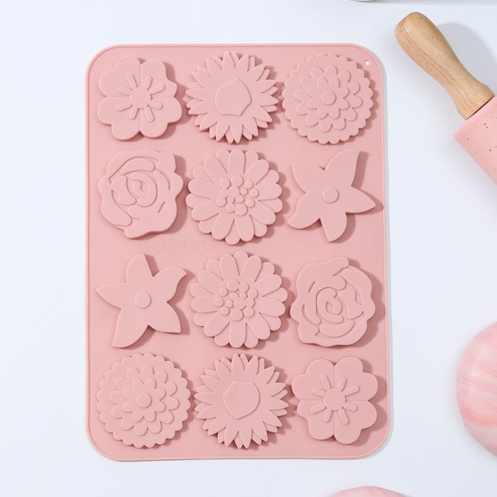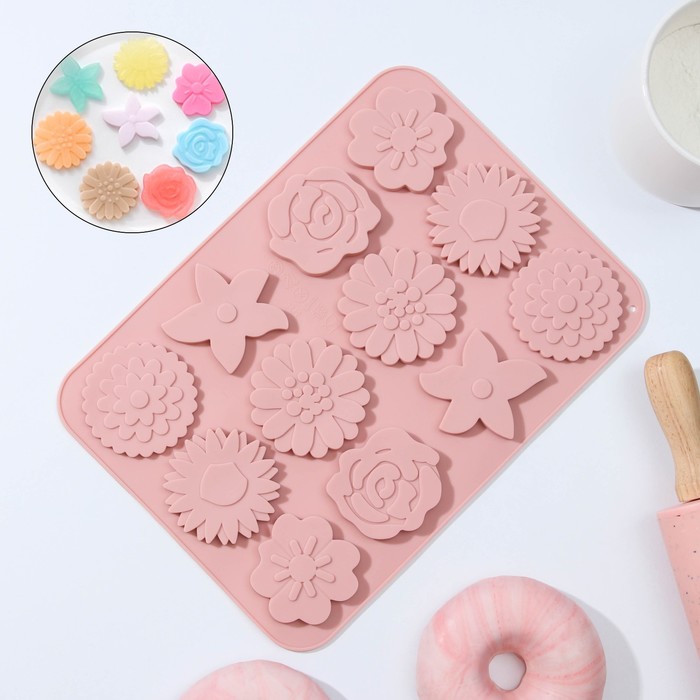 Форма для шоколада Доляна «Цветочная поляна», силикон, 22.5×16.5×0.5 см, 12 ячеек, цвет МИКС 7 фото