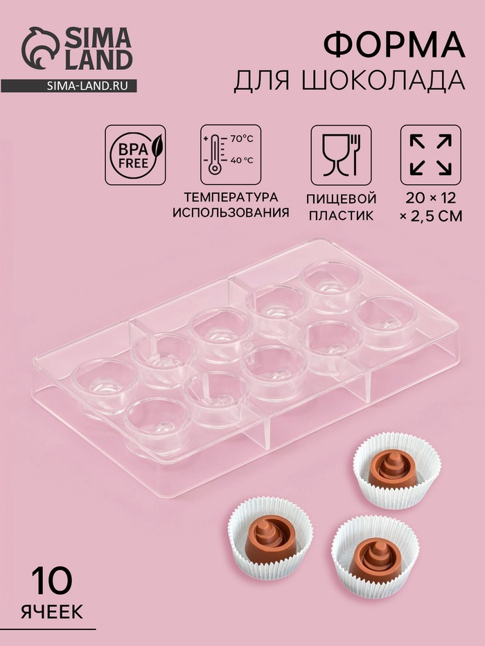 Форма для конфет и шоколада «Конфи», 20×12×2.5 см, 10 ячеек 3×1.5 см, прозрачная 5 фото