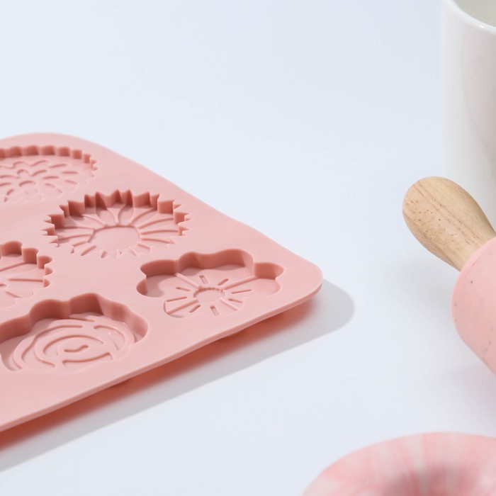 Форма для леденцов Доляна «Тропики», силикон, 13.5×13.5×1.2 см, 8 ячеек, с палочками, розовая 7 фото
