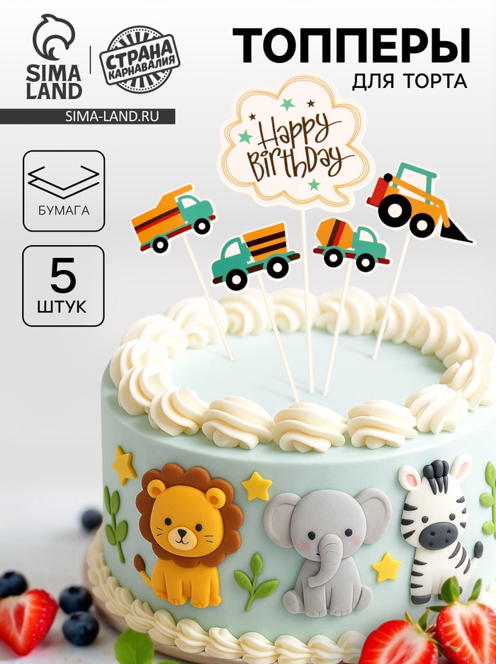 Топпер для торта «С днём рождения. Транспорт», 5 шт. 3 фото