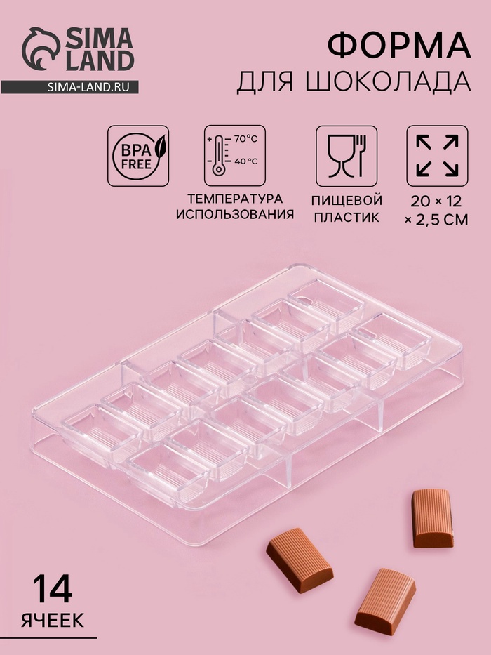 Форма для конфет и шоколада «Шоколатье», 20×12×2.5 см, 14 ячеек 3.3×2.1×1.5 см, прозрачная 5 фото