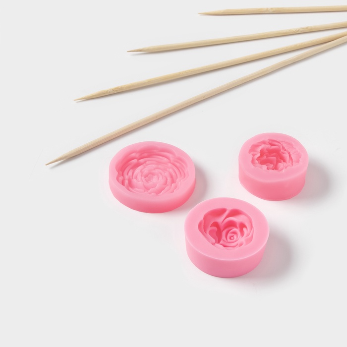 Молды для заливки «Роза», силикон, набор 3 шт., d=5/4.5/4 см, шампуры 45 шт., розовые 9 фото