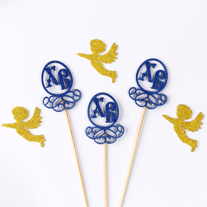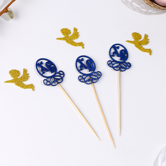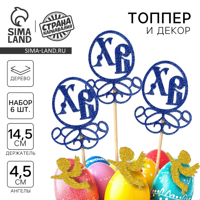 Набор пасхальных топперов «ХВ», 3 шт., синие, 14.5 см, ангелы золотые 4.5 см 4 фото