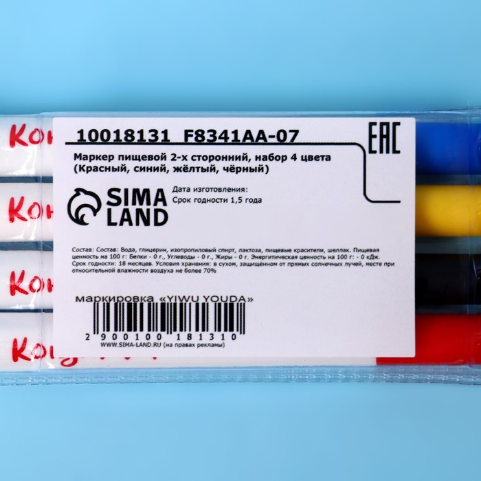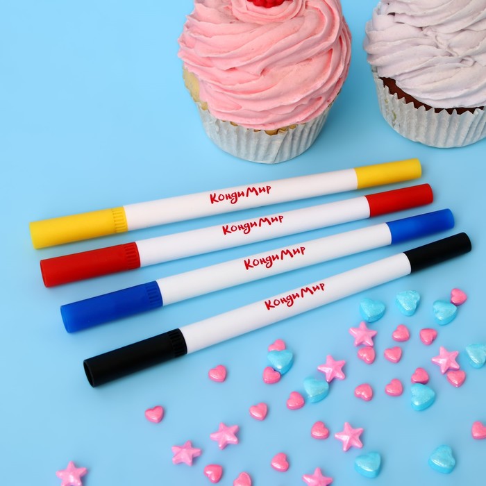 Маркер пищевой 2-х сторонний, набор 4 цвета (Красный, синий, жёлтый, чёрный) 4 фото