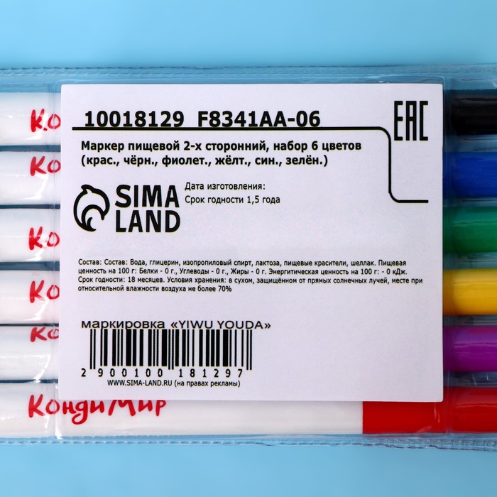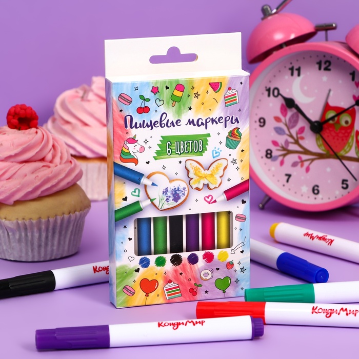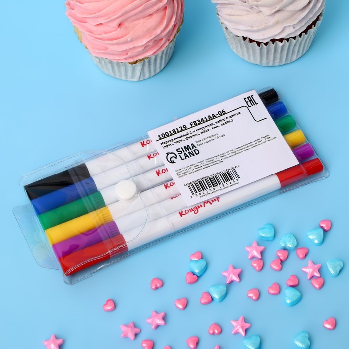 Маркер пищевой 2-х сторонний, набор из 6 цветов 4 фото
