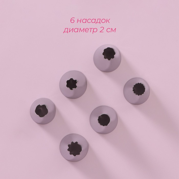 Набор кондитерский Доляна, 8 предметов: 6 насадок d=1.5 см, мешок 26 см, адаптер, насадки МИКС 8 фото