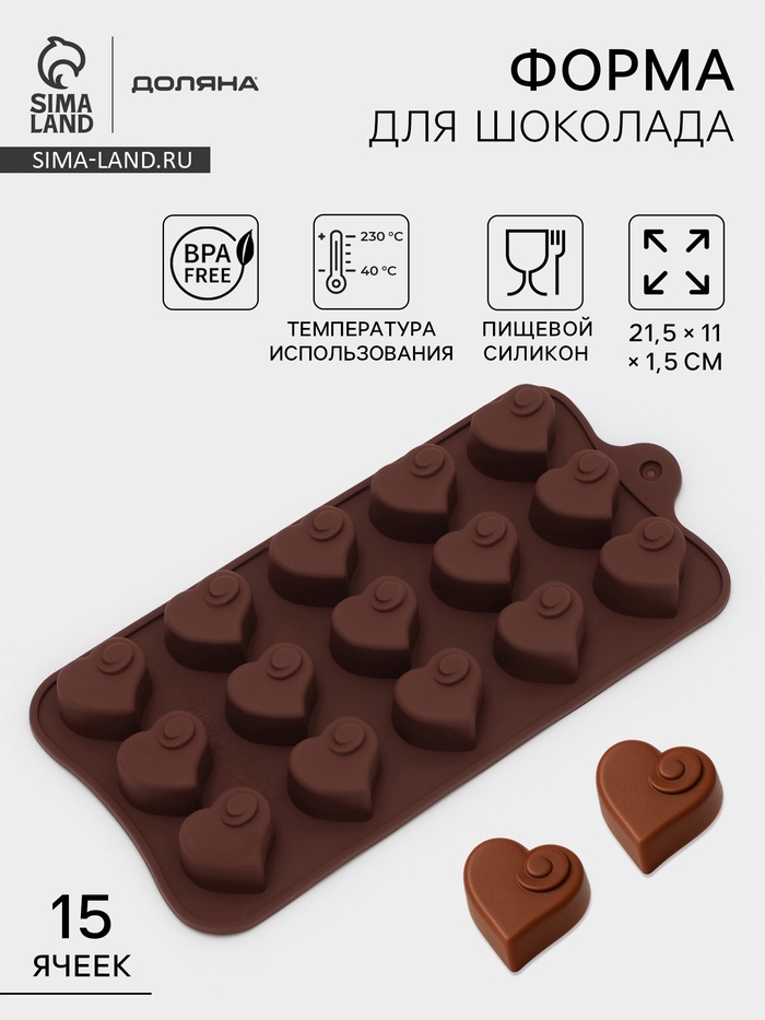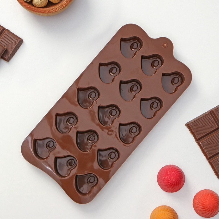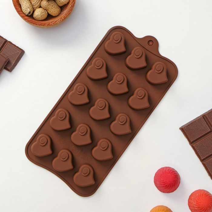 Форма для конфет и шоколада Доляна «Сердцеедка», силикон, 21.5×11×1.5 см, 15 ячеек, коричневая 10 фото