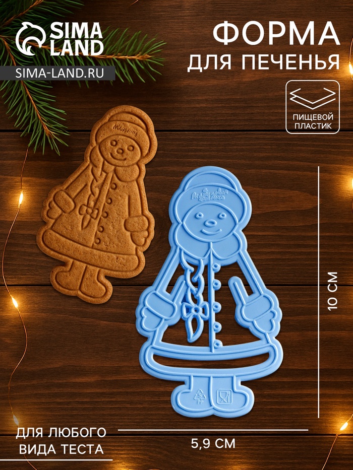 Форма для печенья новогодняя «Снегурочка», вырубка, штамп, 10×5.9×1.4 см, пластик, голубая 7 фото