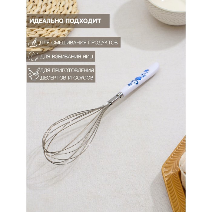 Венчик для взбивания Доляна «Флер», 28 см, цвет белый 5 фото