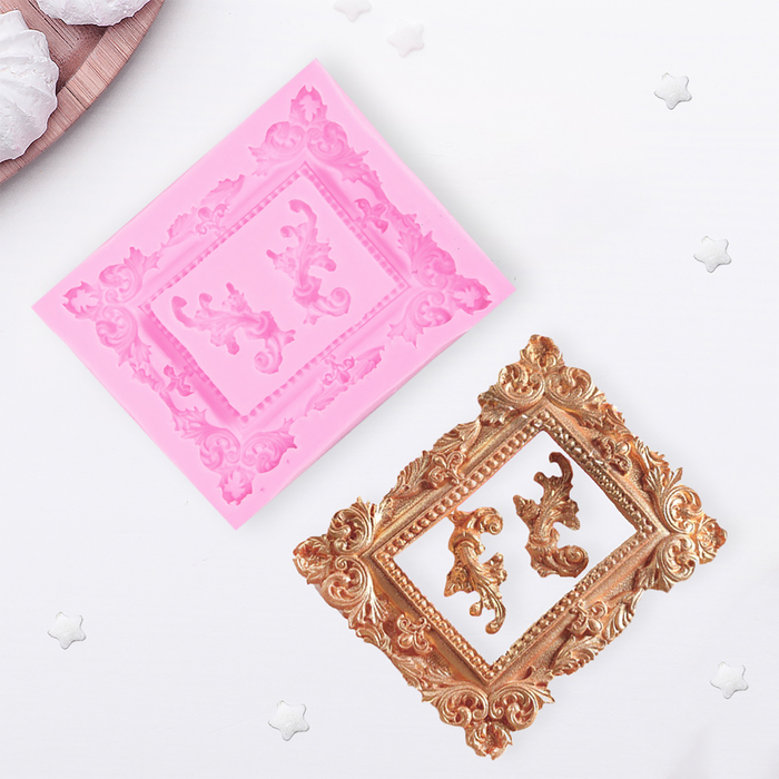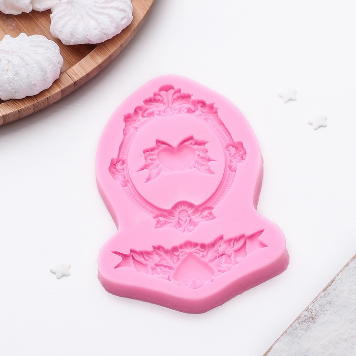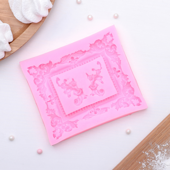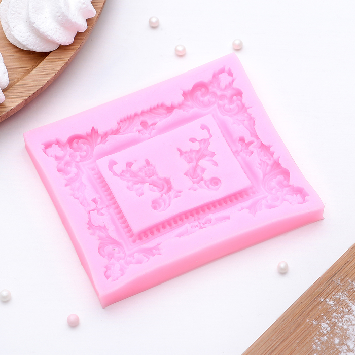 Молд для заливки «Рамка, лепнина», силикон, 9.5×11.5 см, розовый