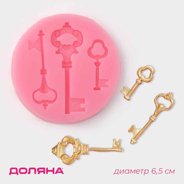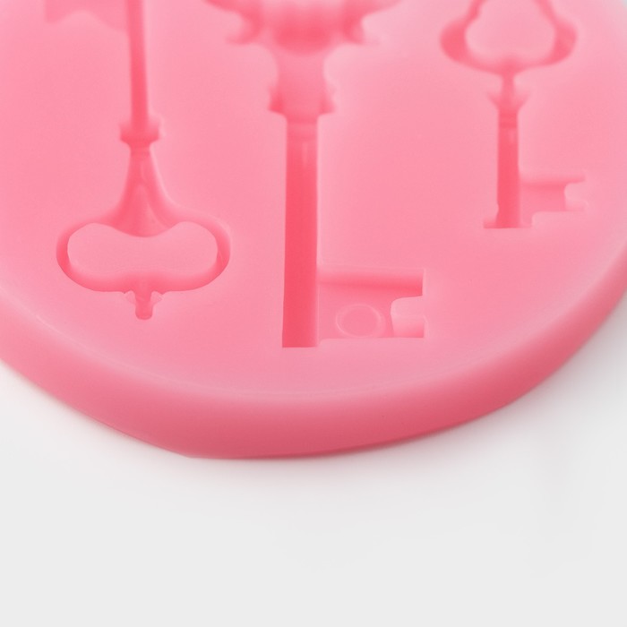 Молд для заливки Доляна «Три ключа», 3 ячейки, силикон, 6.5×1 см, розовый