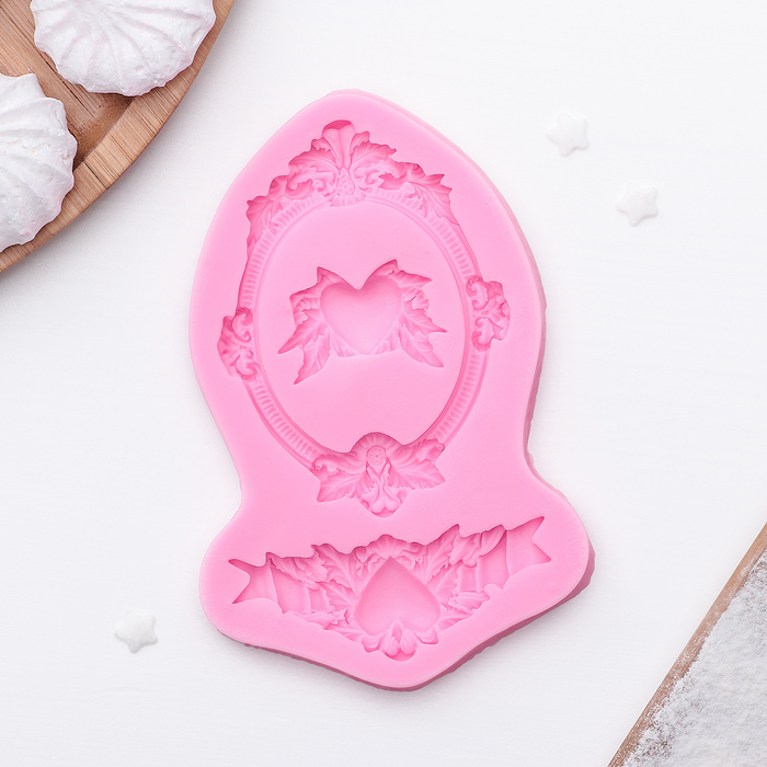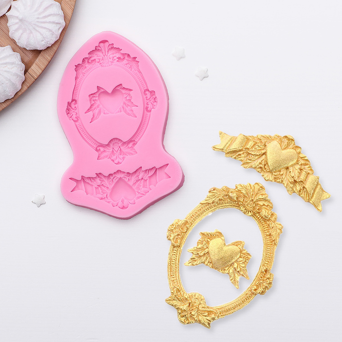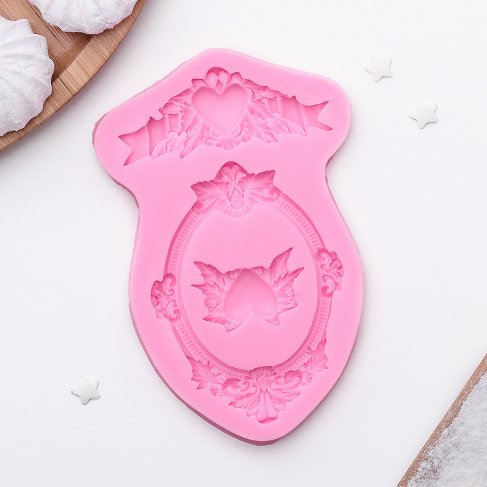 Молд для заливки «Сердца, рамка, лепнина», силикон, 12.5×8.2×1.1 см, МИКС