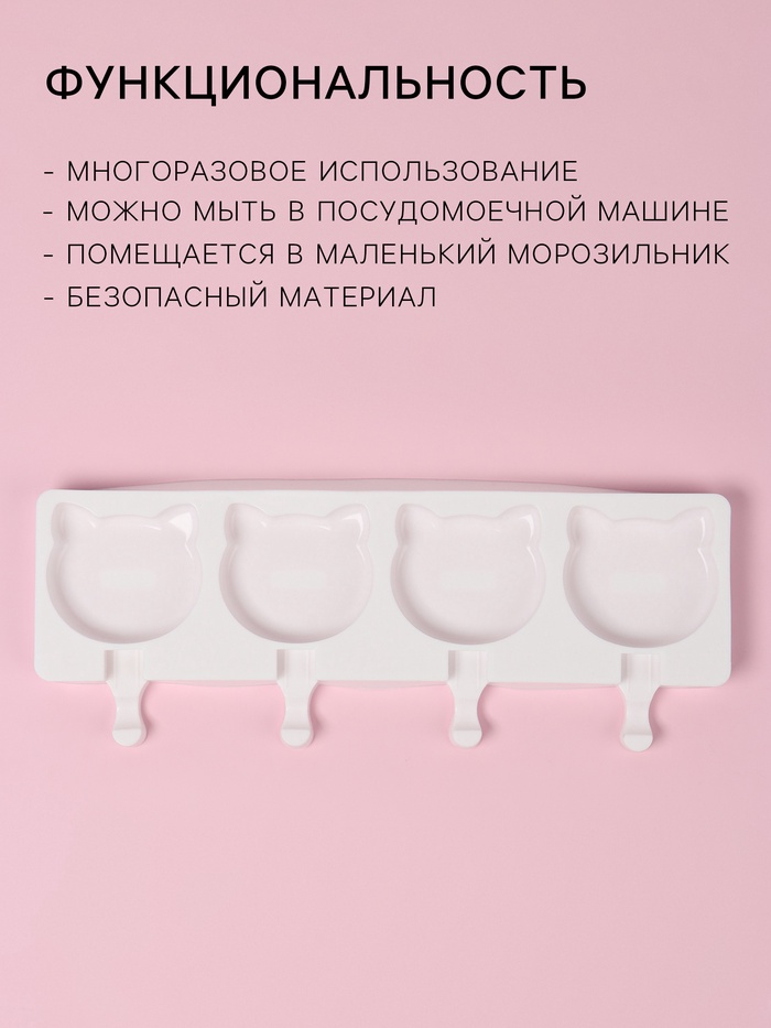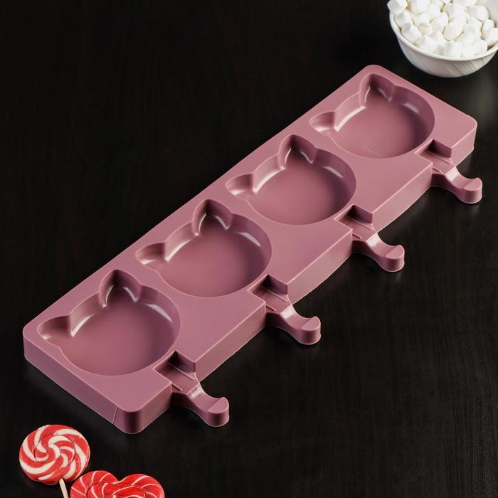 Форма для мороженого «Коты», силикон, 38×14.5×2.5 см, 4 ячейки, МИКС