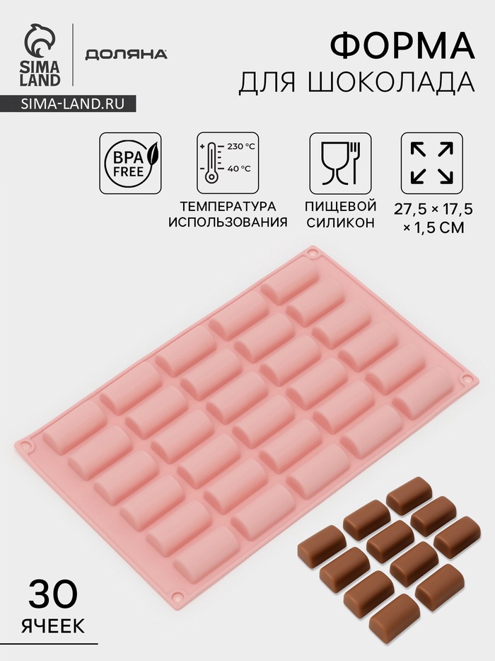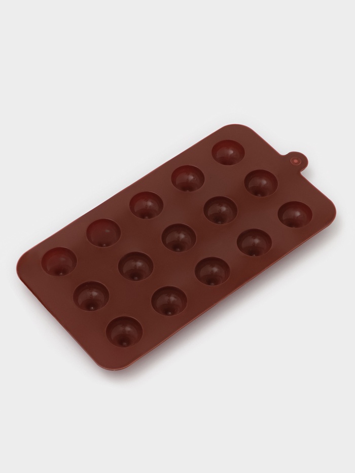 Форма для конфет и шоколада Доляна «Трюфель», силикон, 20.5×10.5 см, 15 ячеек (d=2.2 см), коричневая