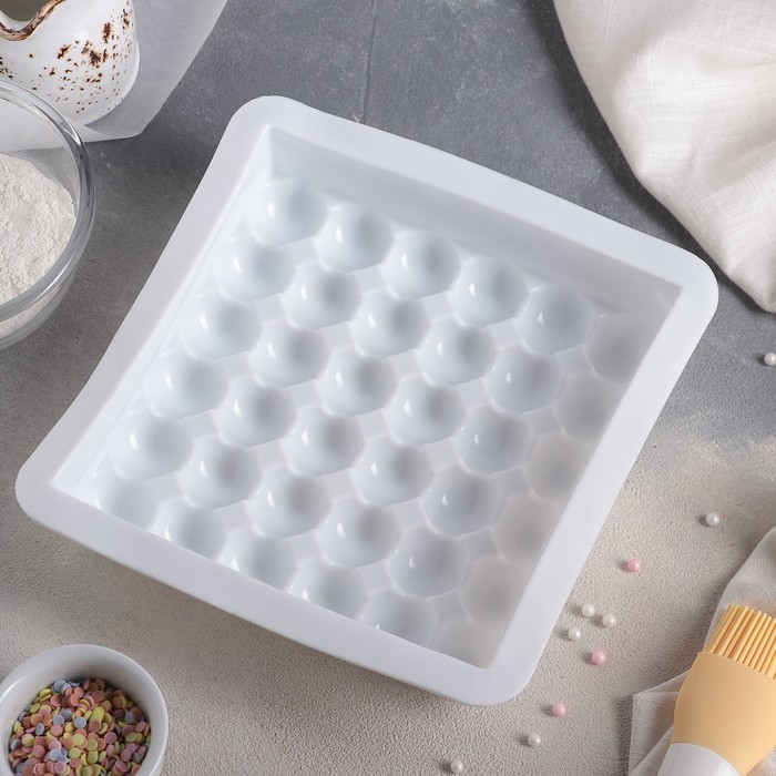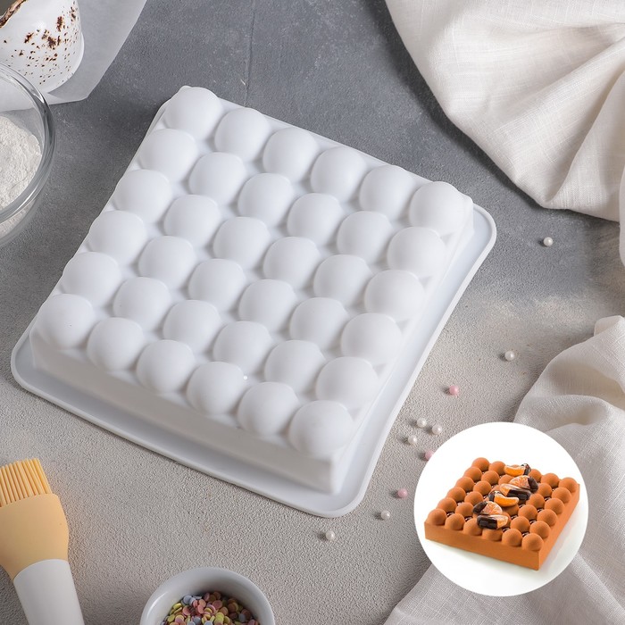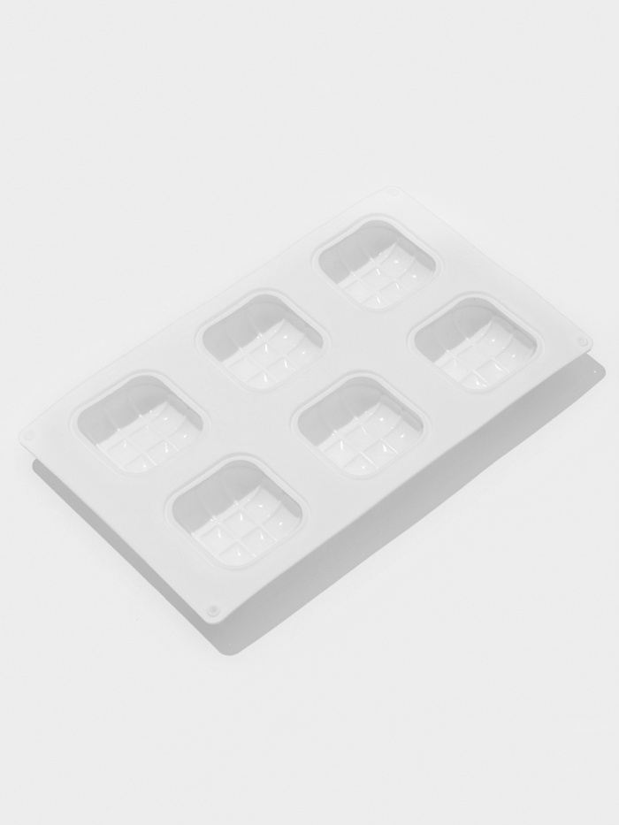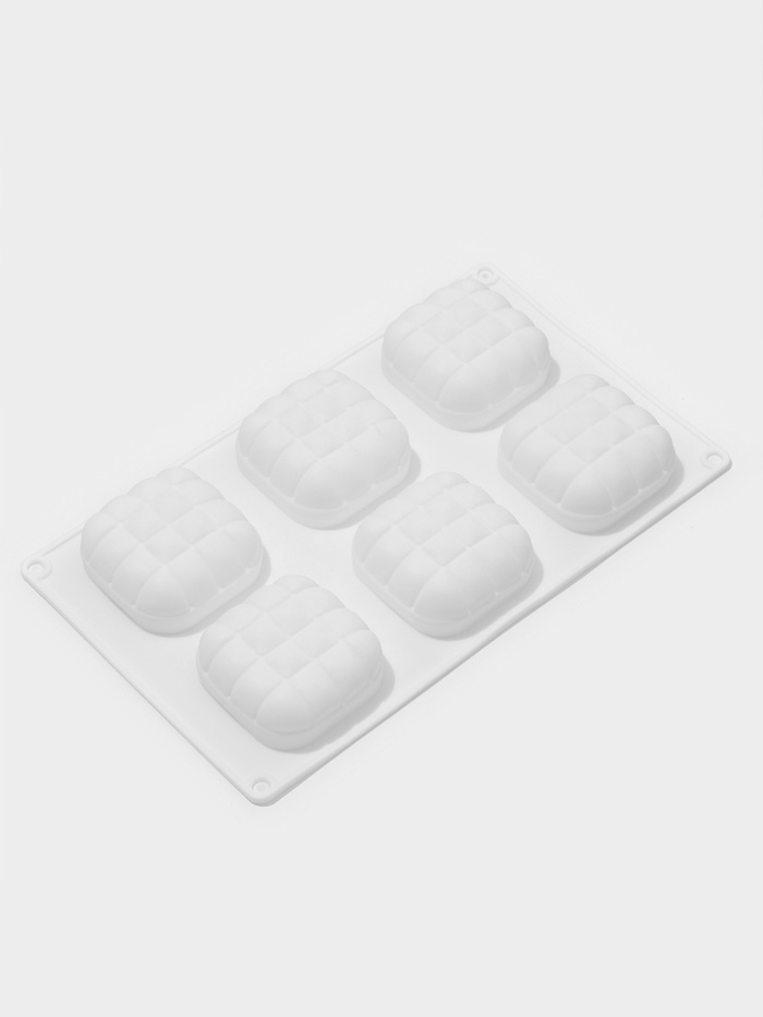 Форма для муссовых десертов и выпечки Доляна «Перина», 29×17×3 см, 6 ячеек (6.5×6.5 см), силикон, белая
