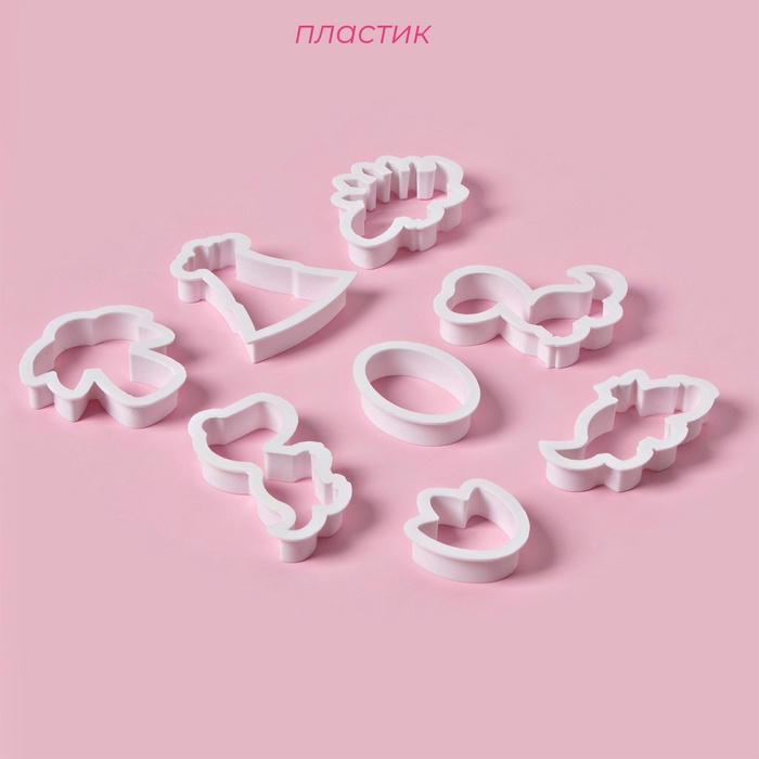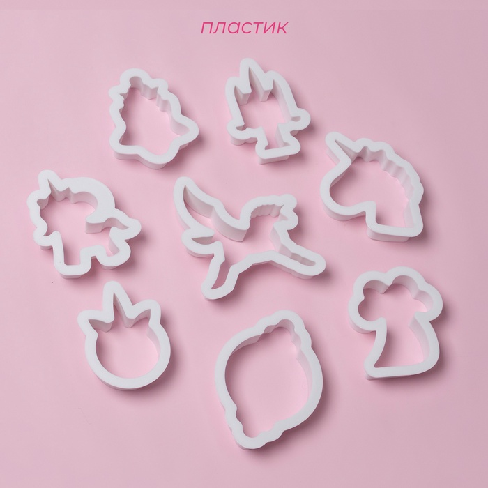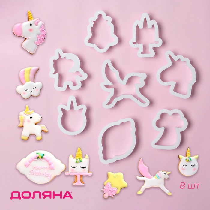 Формы для печенья Доляна «Праздник единорога», набор 8 предметов, 9×6×1.5 см, пластик, белые 5 фото
