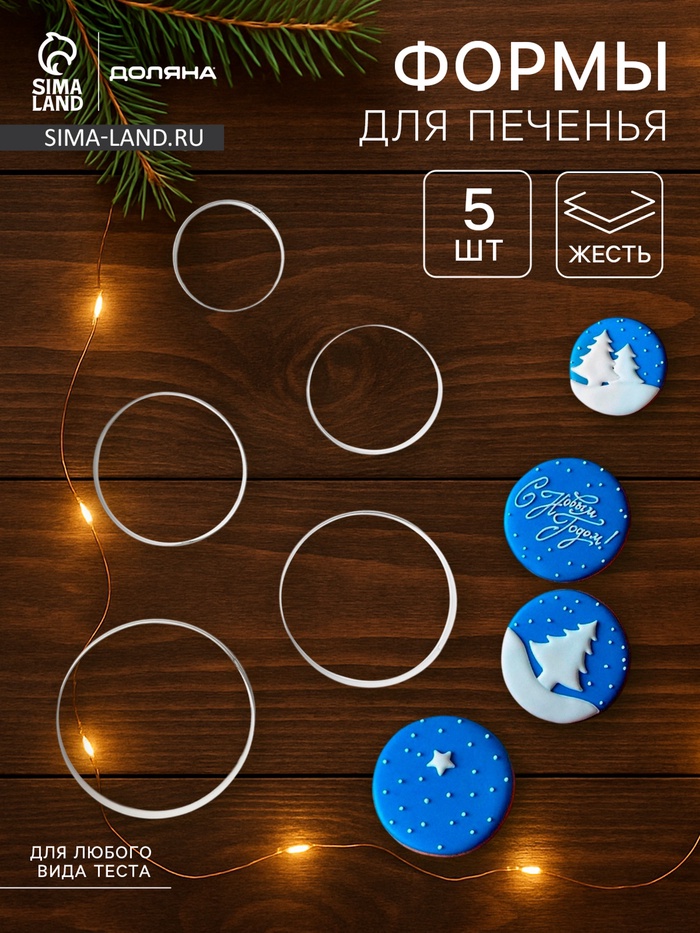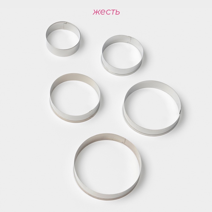 Формы для печенья Доляна «Круг», набор 5 шт.: 4 см, 4.5 см, 5.5 см, 6 см, 7 см, металл, серебристые 5 фото