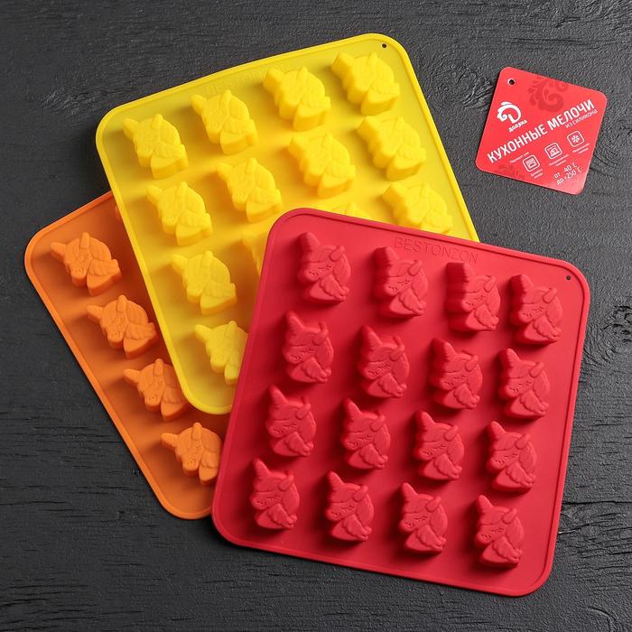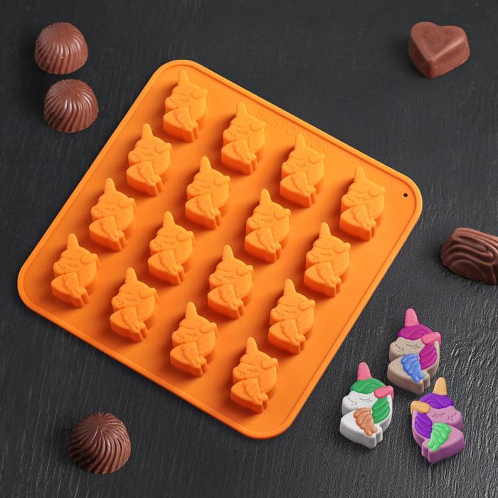 Форма для конфет и шоколада Доляна «Пони», силикон, 18×18×1 см, 16 ячеек, МИКС 6 фото