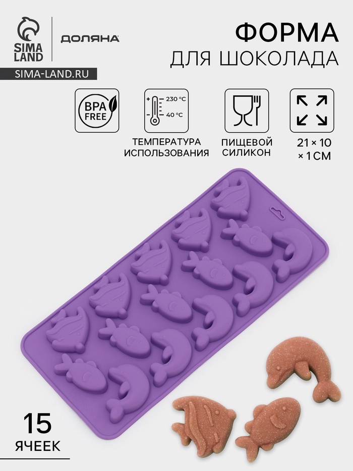 Форма для конфет и шоколада Доляна «Подводный мир», силикон, 21×10×1 см, 15 ячеек (3×3.5 см), МИКС 10 фото