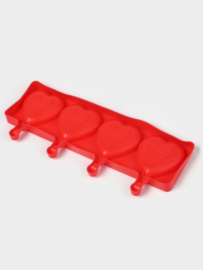 Форма для мороженого «Сердца», силикон, 37×15×2.5 см, 4 ячейки (9.2×8.4 см), МИКС 9 фото
